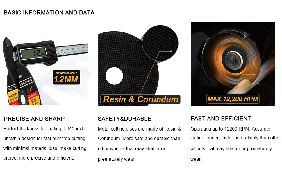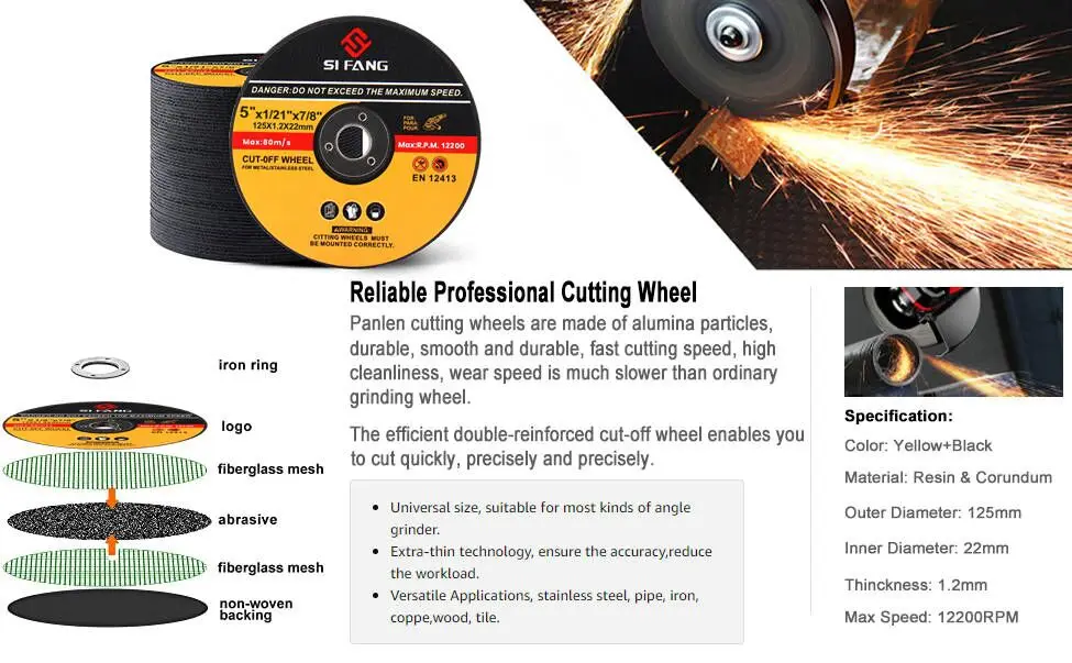 섬유 강화 수지 연삭 휠, 고급 알루미나 연마제, 수정 된 모래, 우수한 인성 및 경도, 더 나은 절단 효과.