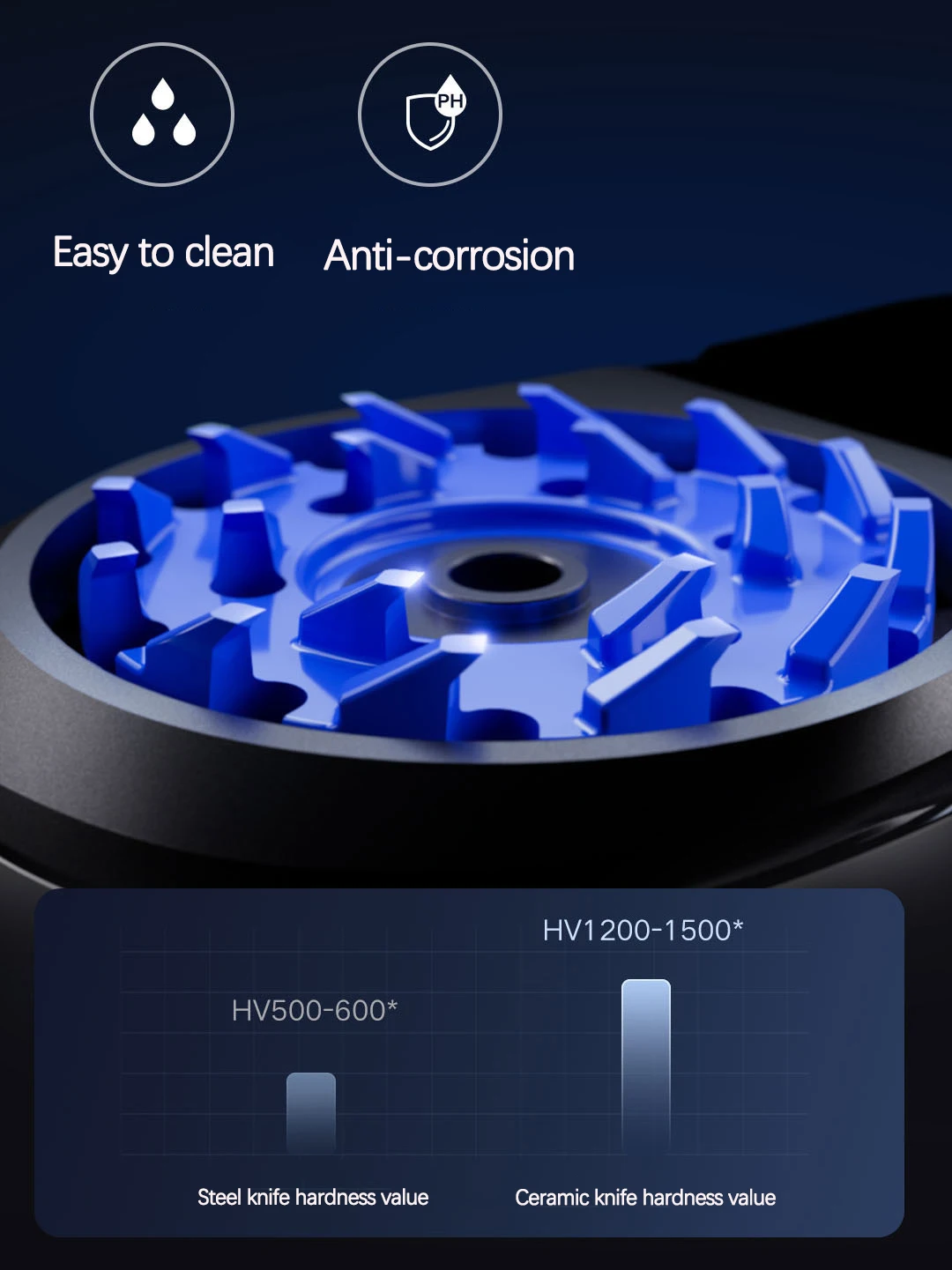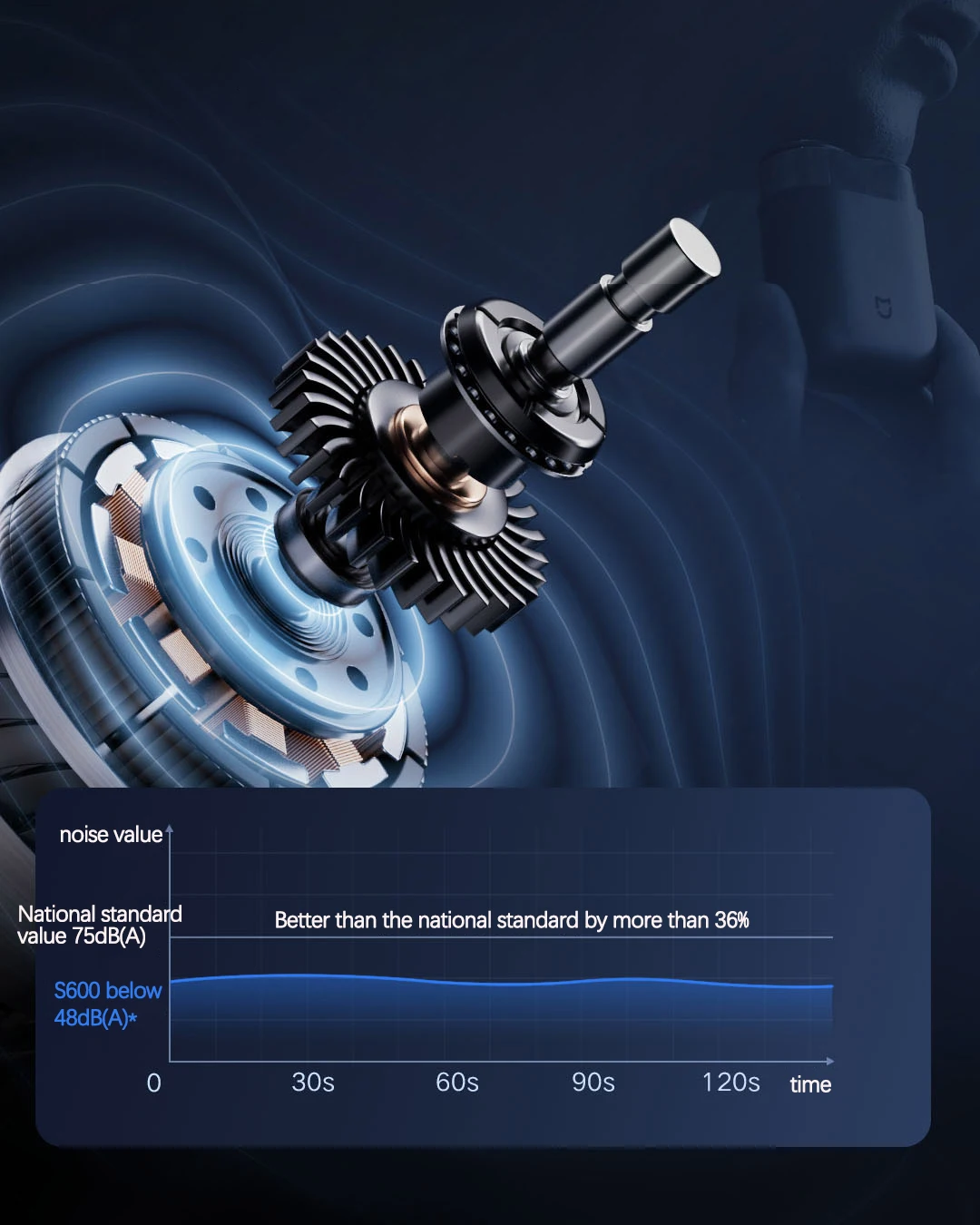 면도기에는 강력한 출력이지만 저소음을 가진 고속 브러시리스 모터가 장착되어 있습니다. 내장 칩은 지능적으로 부하를 감지하고 속도는 일정합니다.