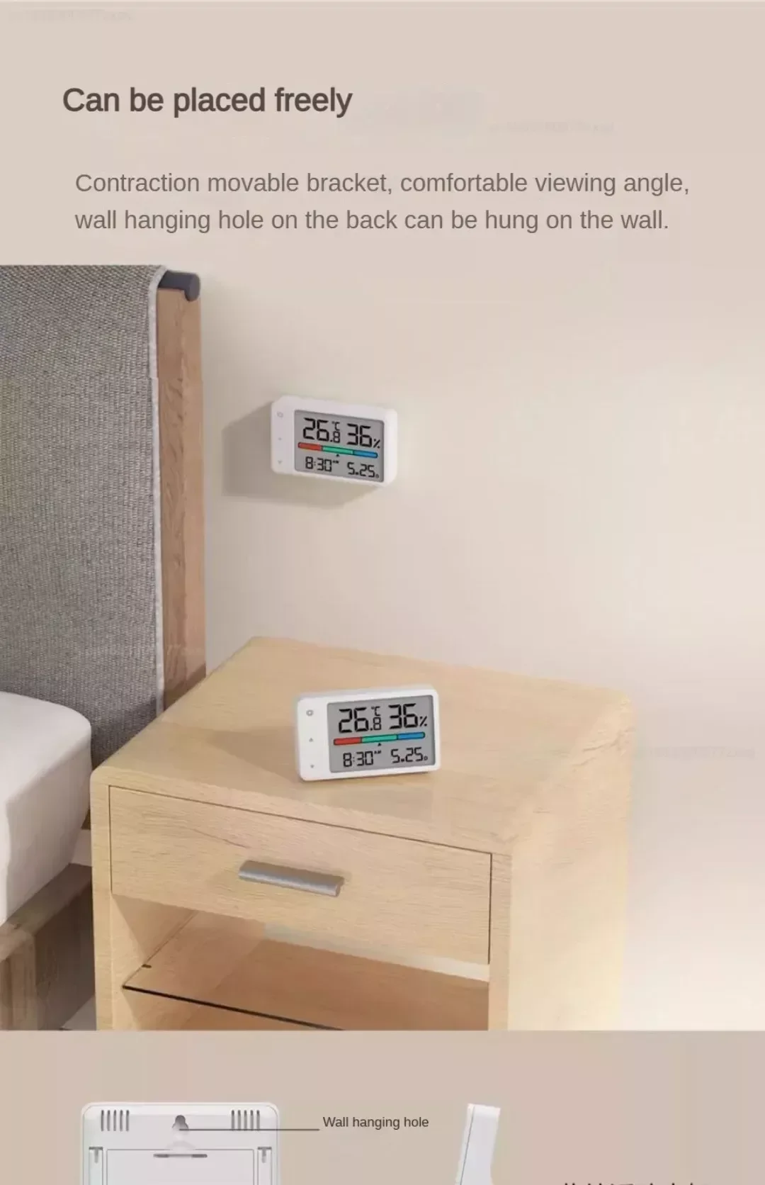 샤오미 MiaoMiaoCe 지능형 온도계 습도계 다기능 시계, HD 디지털 디스플레이 기상 관측소 스탠딩 걸이식