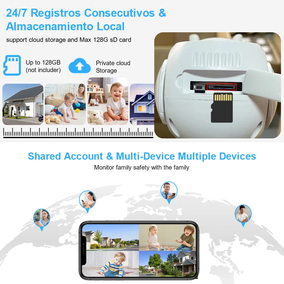 무료 30 일 클라우드 스토리지 및 최대 128G SD 카드 기록, 데이터 보안이 더욱 안정적입니다. 클라우드 서비스를 계속 사용하려면 비용을 지불하면됩니다. 사용할 필요가 없으면 수수료를 지불하지 않으면 자동으로 중지됩니다.