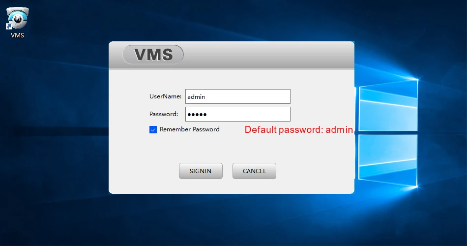2. 컴퓨터에 VMS 소프트웨어를 설치 한 다음 로그인 VMS 소프트웨어, 사용자 이름: admin, 비밀번호: admin
