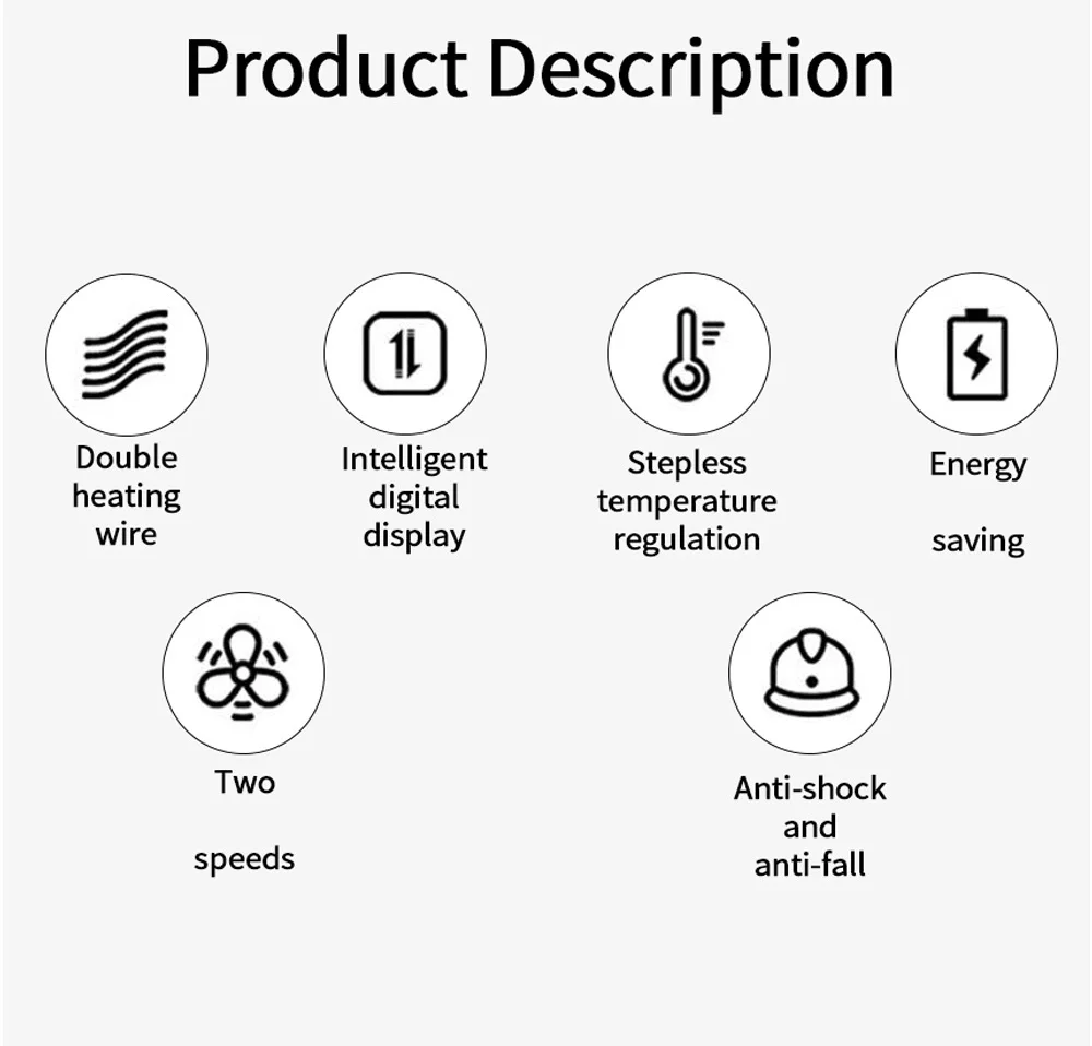 디지털 디스플레이, 풍속 조정할 수 있습니다, 고품질 발열체는 더 긴 사용 시간을 허용합니다