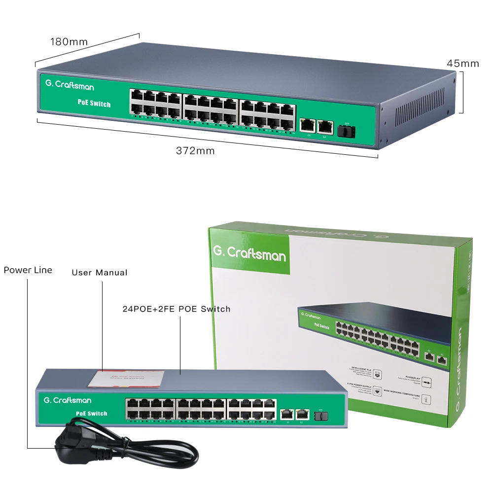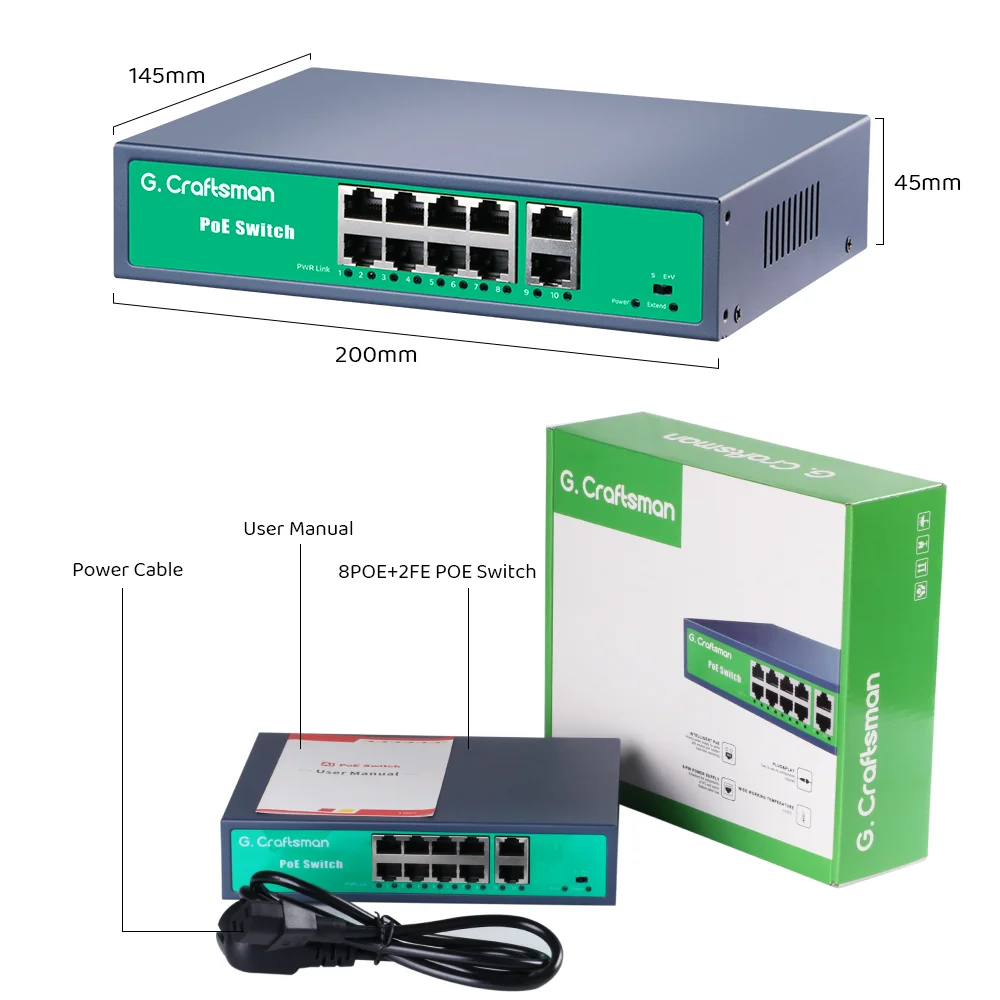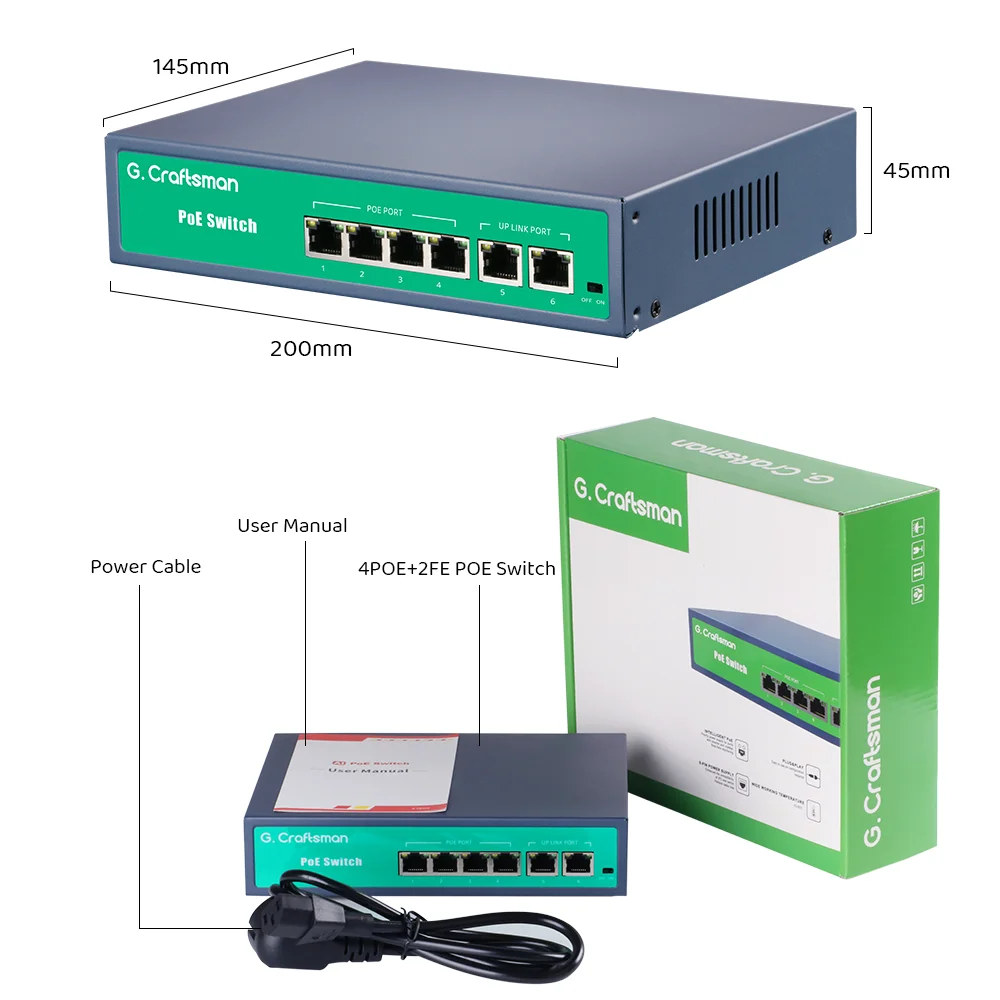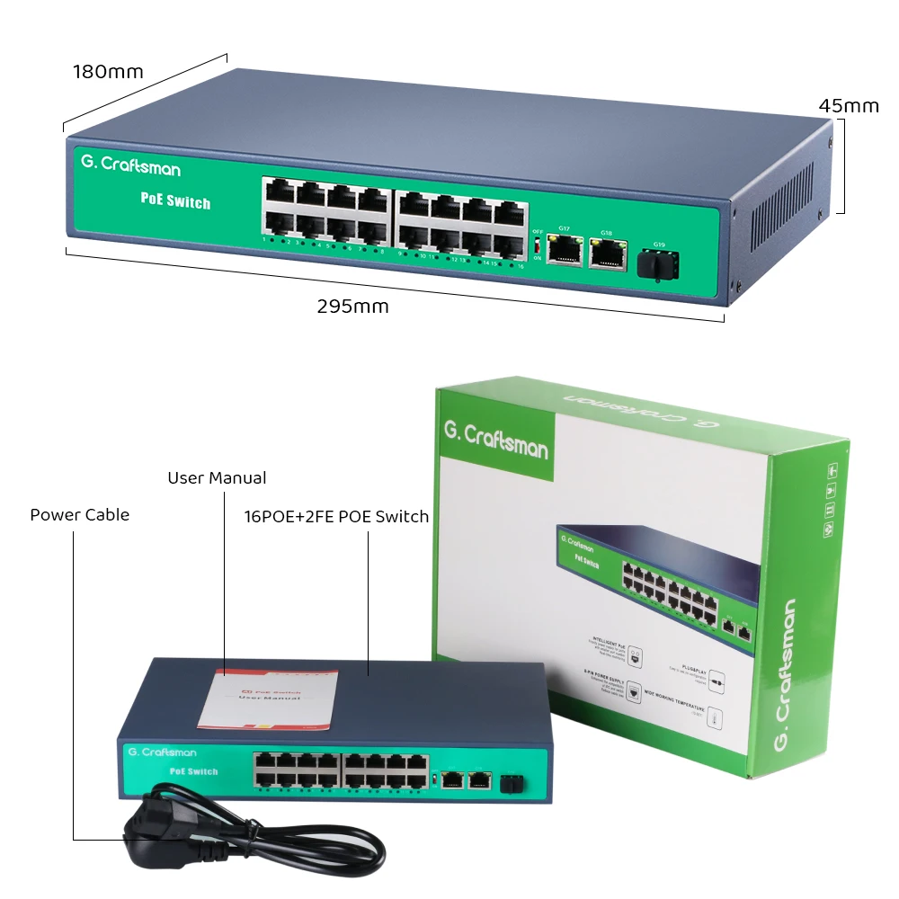 G.Craftsman-POE 스위치 4 8 16 포트 지원 IEEE802.3af/at CCTV 5MP 8MP 4K IP 카메라, 비디오 감시 무선 AP 100/1000bps